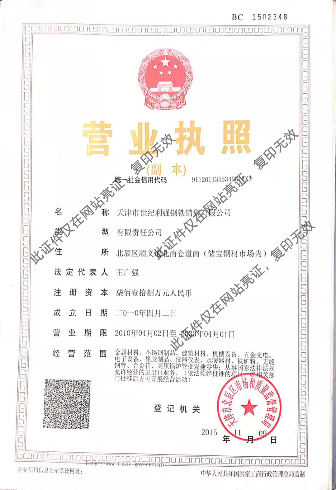 天津市世纪利强钢铁销售有限公司主营:天津大无缝,包钢,上海宝钢,鲁宝,衡阳华菱,江阴长江等各大钢厂生产的GB/T8162结构用无缝钢管,GB/T8163流体用无缝钢管,GB3087低中压锅炉用无缝钢管,GB/T5310高压锅炉用无缝钢管,GB/T6479高压化肥设备用无缝钢管,GB/T9948石油裂化用无缝钢管,Q345B,Q345C,Q345D,Q345E无缝钢管,高压合金管等产品。公司产品品种丰富,广泛应用于石油、化工、电力、锅炉、船舶、机械等行业,现已销往全国各地,得到诸多客户的好评。